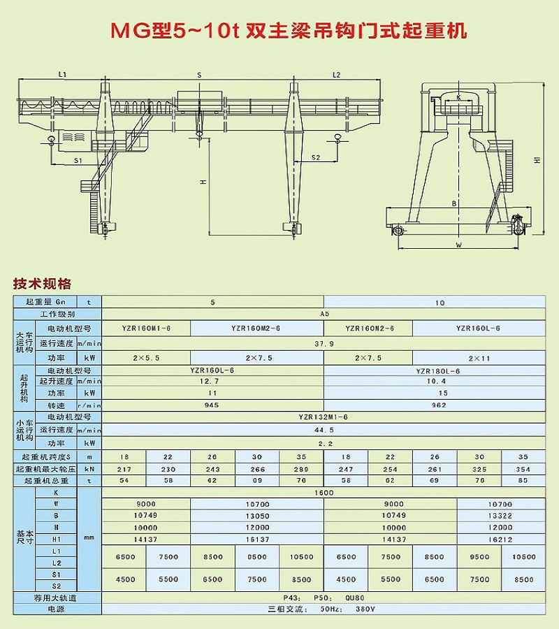 LH型5t、10t、16t電動葫蘆橋式起重機